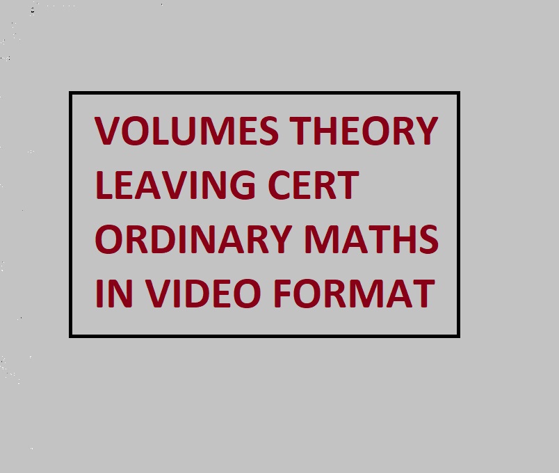CONTAINS ALL THE THEORY IN WELL EXPLAINED VIDEO EXAMPLES OF ALL THE TOPICS NEEDED FOR THIS EVER PRESENT TOPIC ON HONOURS AND ORDINARY LEAVING CERT VOLUMES....SAME THEORY NEEDED FOR BOTH